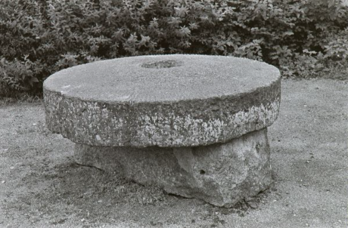 Toinen myllynkivi Hagalundin kartanon pihassa, vuonna 1969, kuva KAMU Espoon kaupunginmuseo.