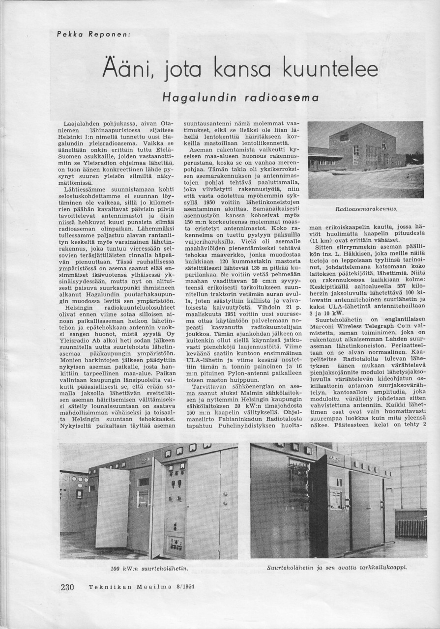 Juuri Tapiolan puutarhakaupungin rajojen ulkopuolella sijaitsi aikoinaan "Hagalundin radioasema". Vaikka aseman radiomastot ovat vanhoille asukkaille tuttuja, on aseman toiminta tarkemmin hieman vähemmän tunnettua. Tekniikan Maailma esitteli silloin uuden uutukaisen aseman vuoden 1954 numerossaan 8.