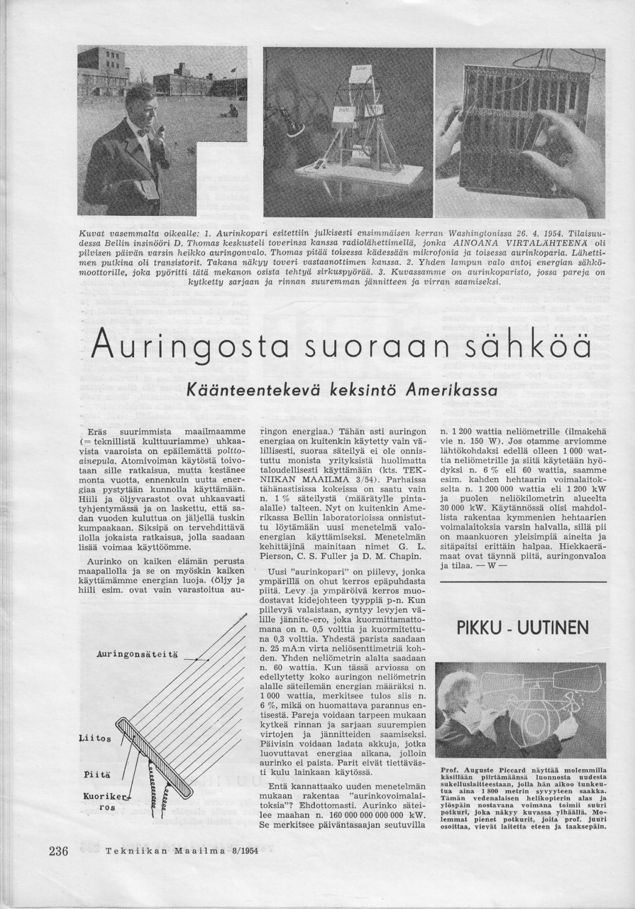 Samaisessa lehdessä oli myös artikkeli "Auringosta suoraan sähköä", jonka esittelemään keksintöön perustuvia tuotteita löytyy nykyisin jo monen puutarhakaupungin talon katolta.