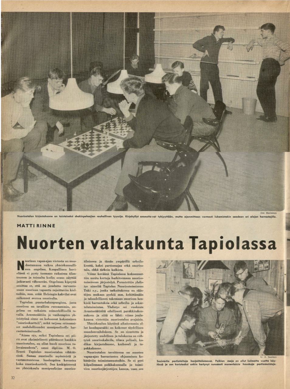 Harvinainen Viikkosanomissa 7.4.1961 ilmestynyt artikkeli Tapiolan nuorisotalosta eli "Räkälästä", jonka avajaisia vietettiin vuoden 1960 joulukuussa.