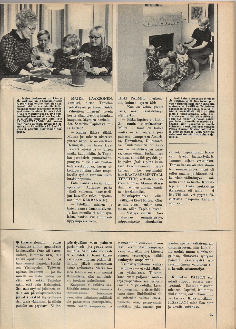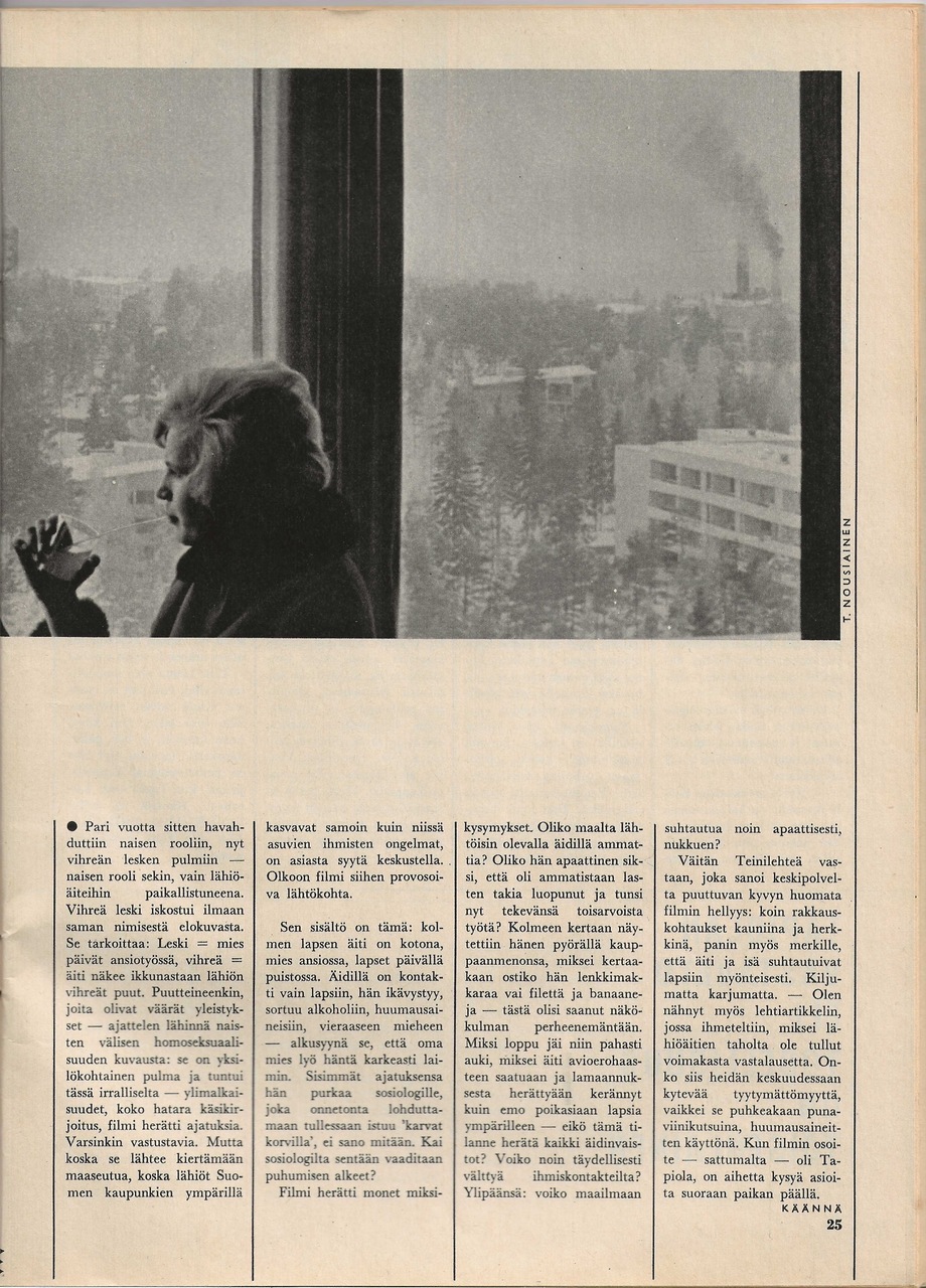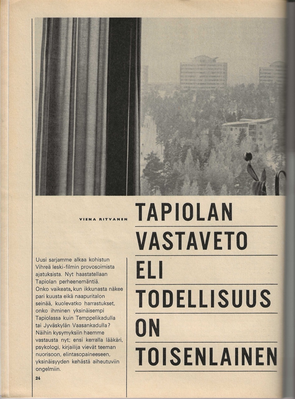 Kotilieden uusi artikkelisarja "alkaa kohistun Vihreä leski -filmin provosoimista ajatuksista. Nyt haastetallaan Tapiolan perheenemäntiä."