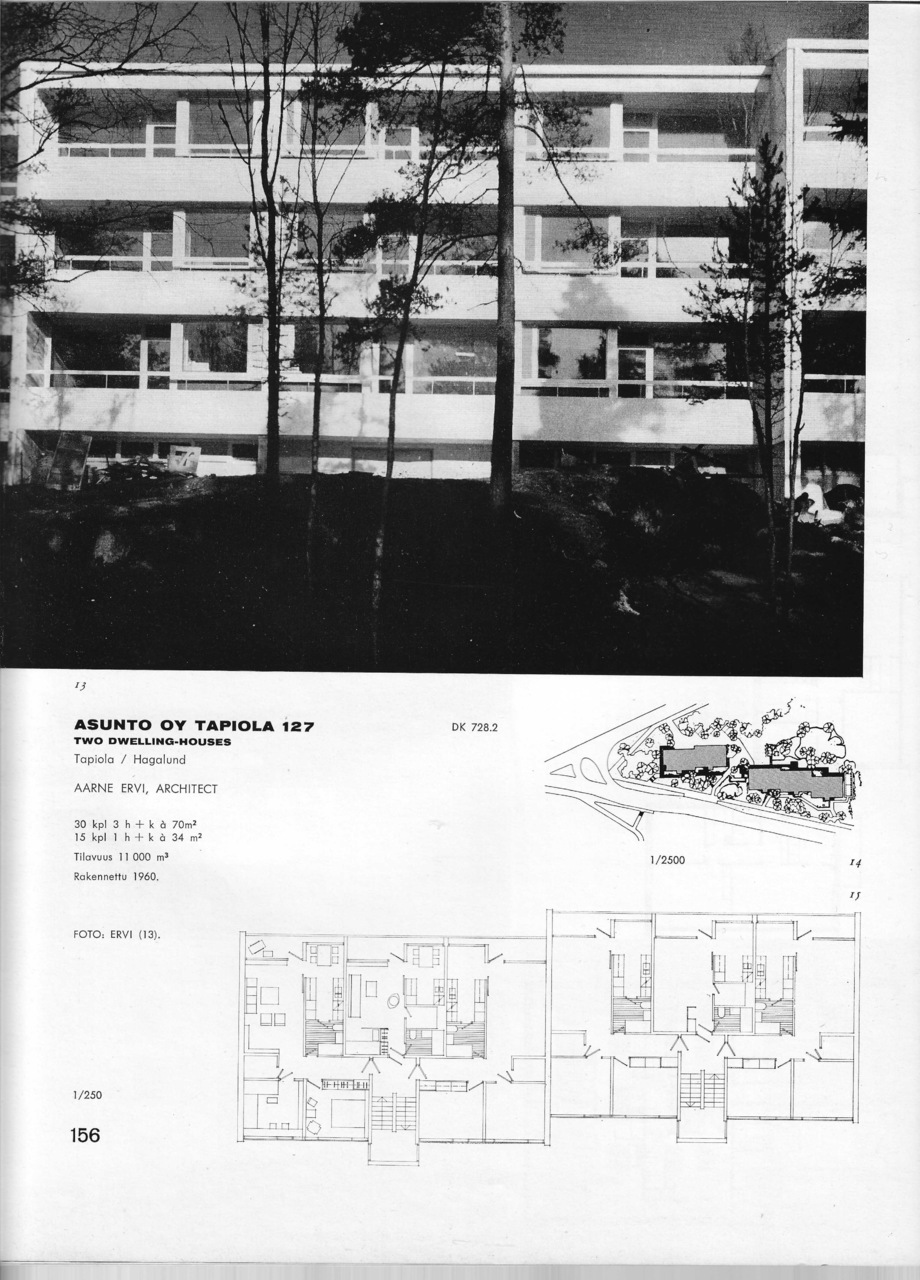Arkkitehti-lehdessä oli vuonna 1960 kerrostaloja esittelevässä artikkelissa kaksi kohdetta Tapiolasta.