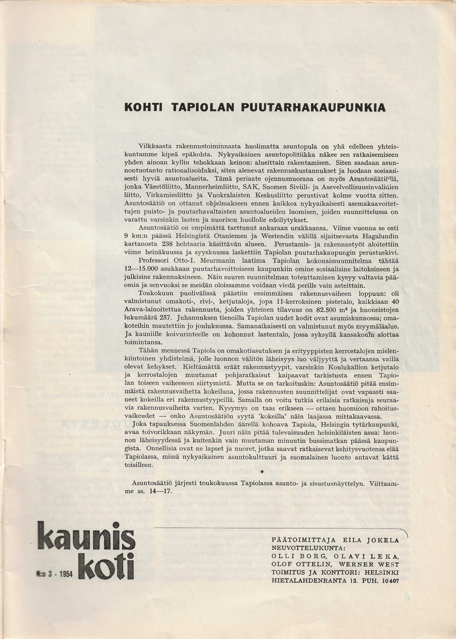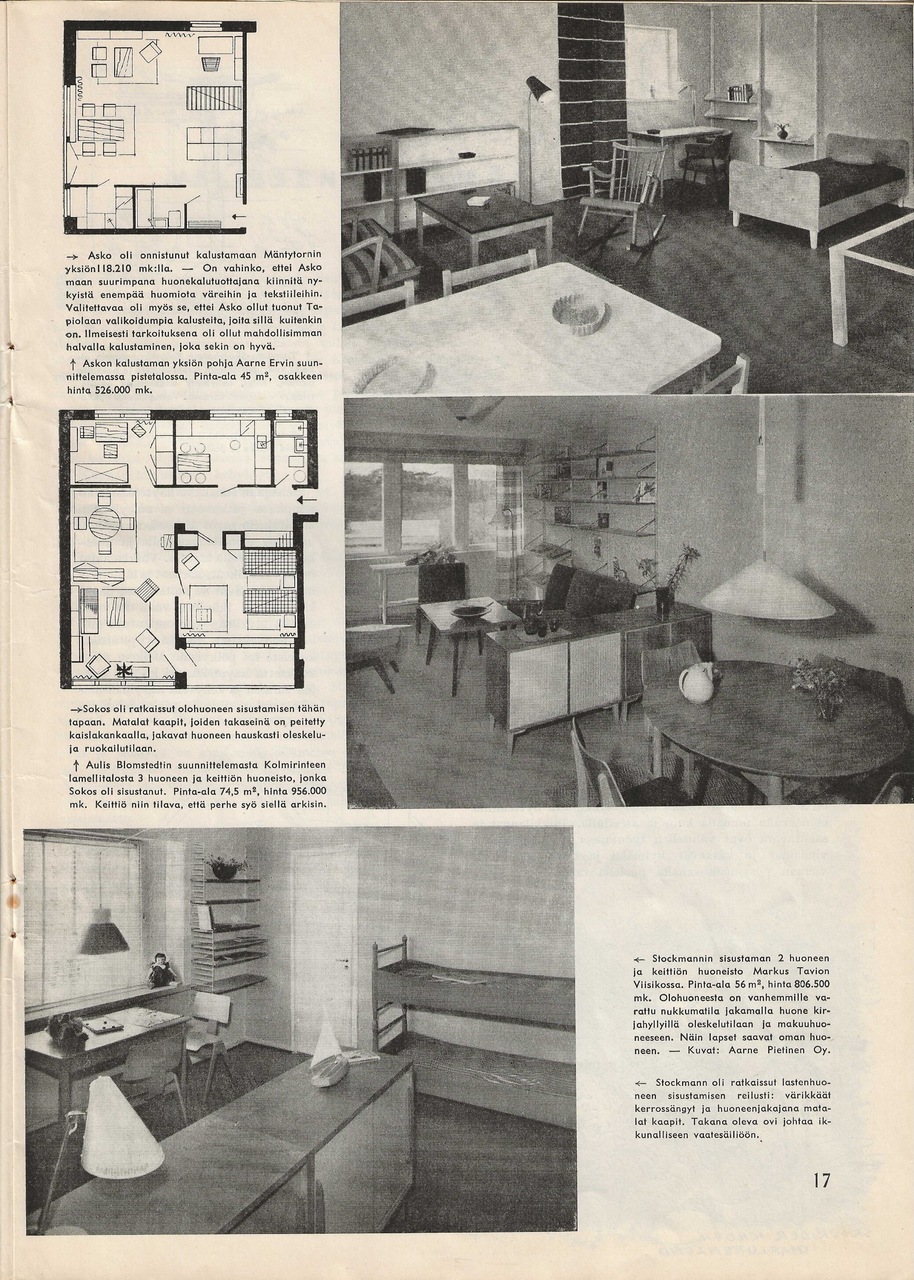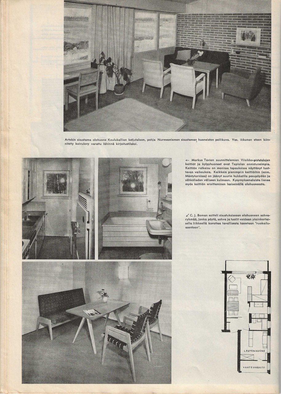 Valiolehdet Oy:n julkaisemassa Kaunis koti -lehdessä kirjoitettiin vuonna 1954 Asuntosäätiön järjestämästä (ensimmäisestä) asunto- ja sisustusnäyttelystä.