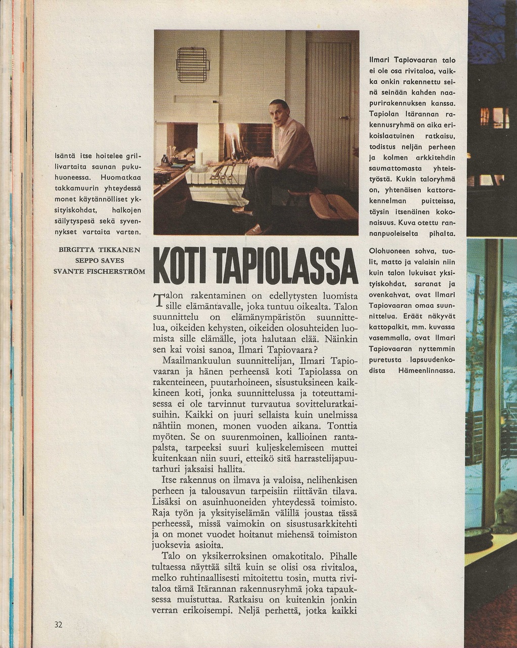 Me naiset -lehti esitteli maailmankuulun suunnittelijan, Ilmari Tapiovaaran, kodin Tapiolan Itärannassa.