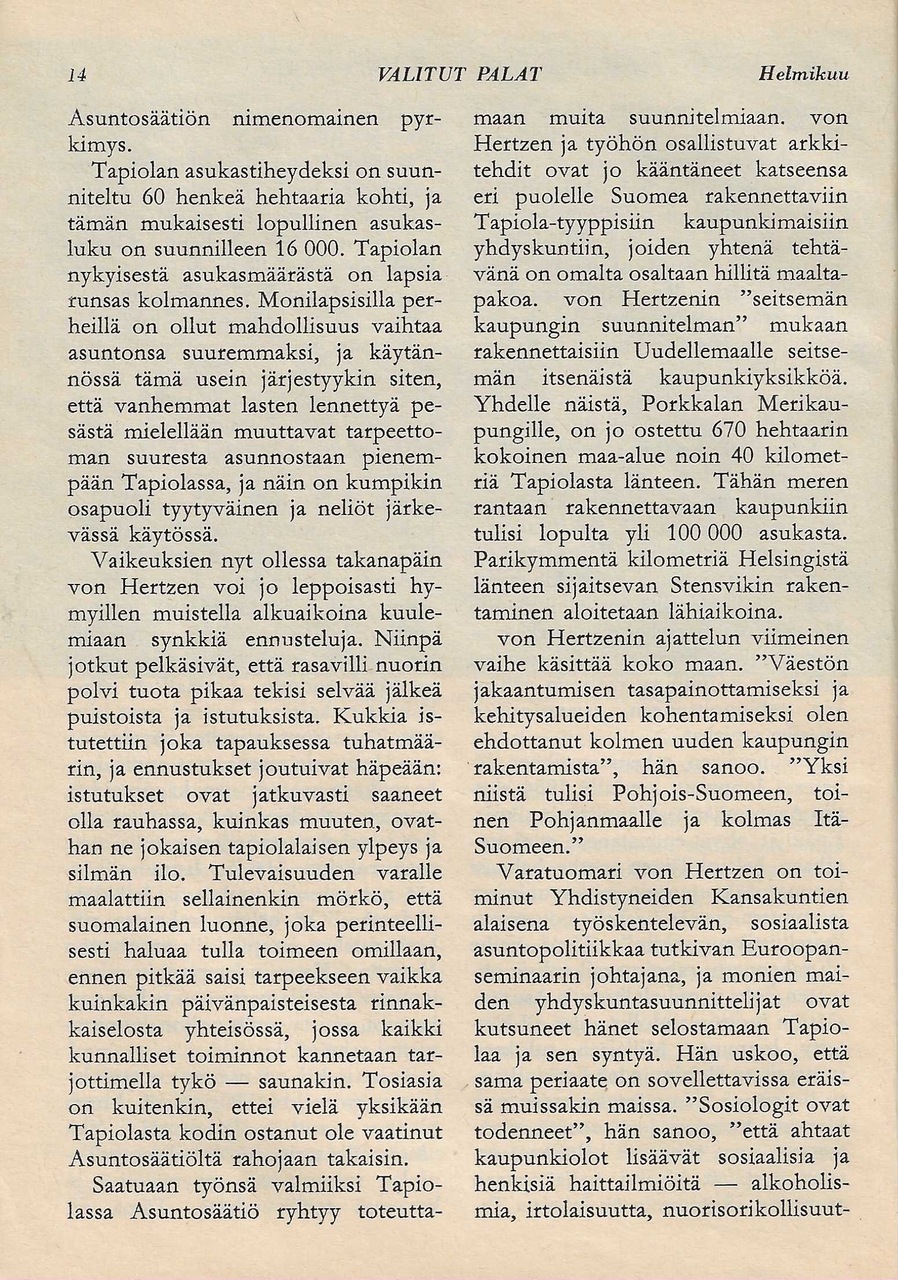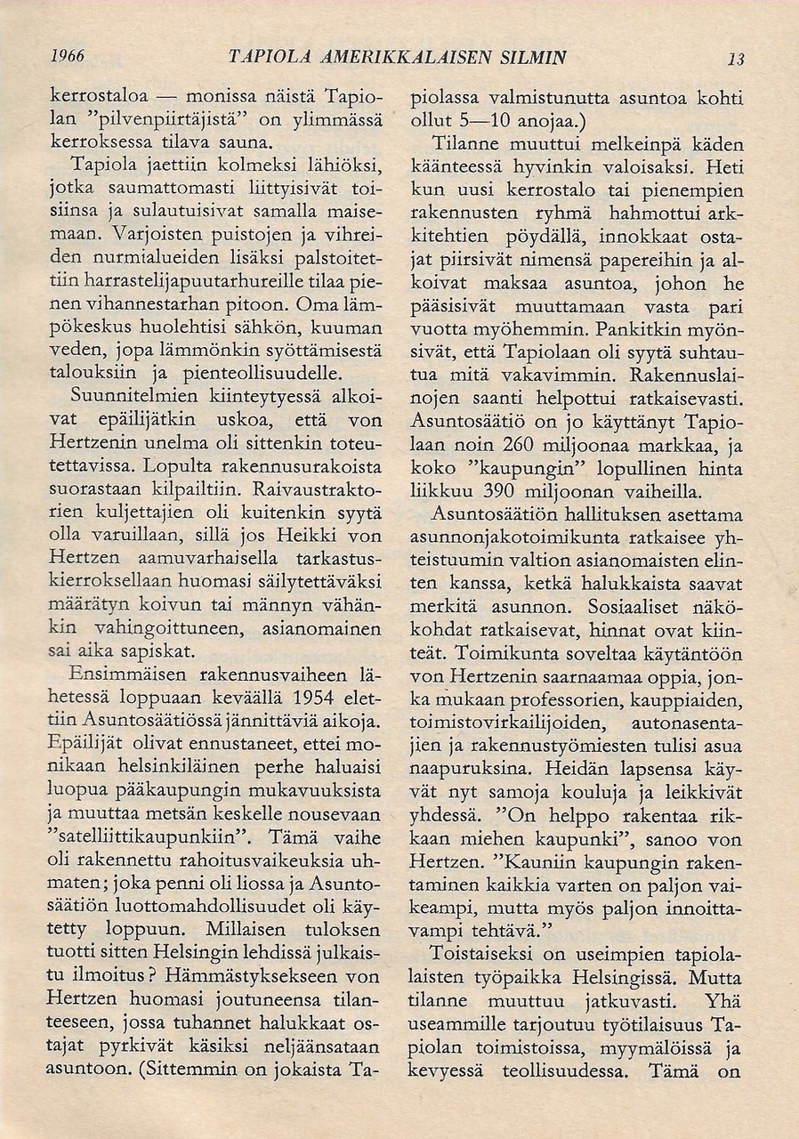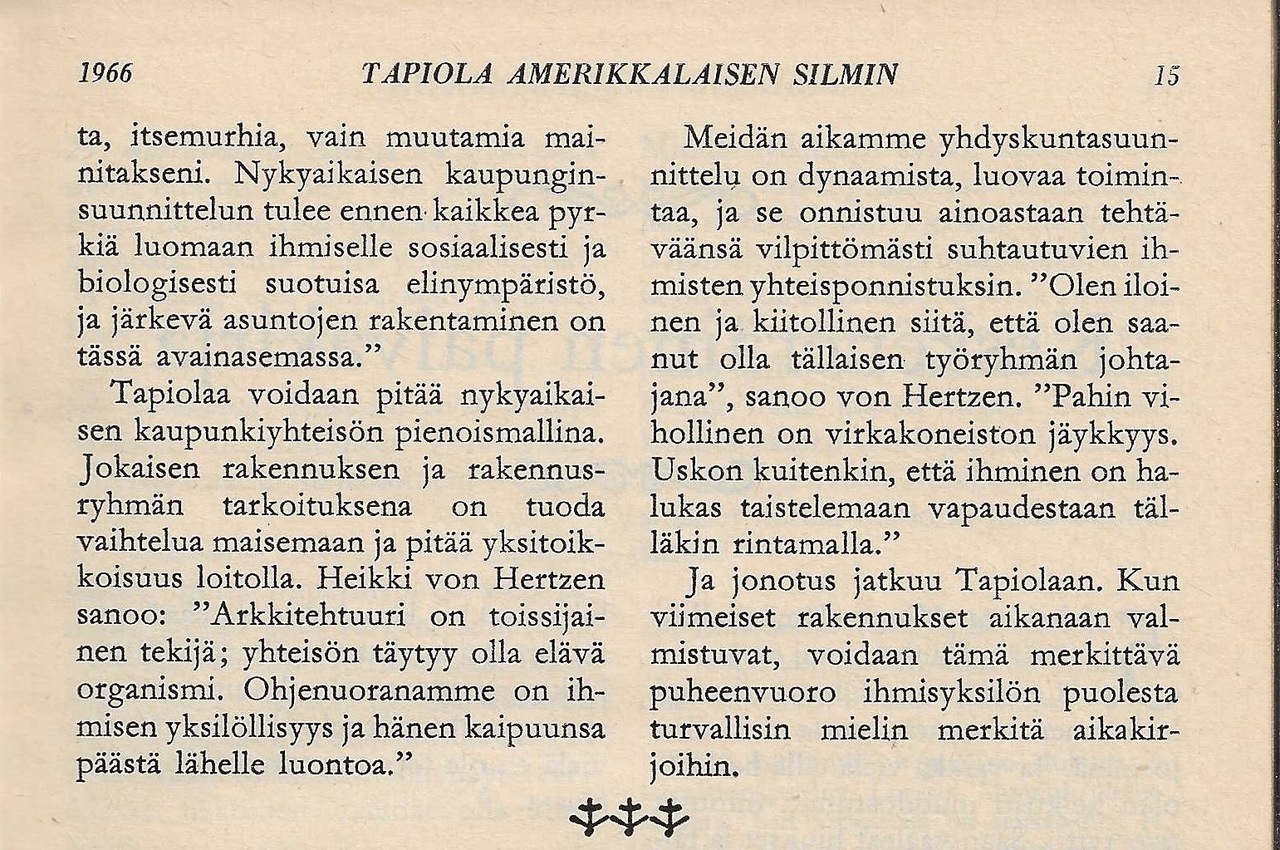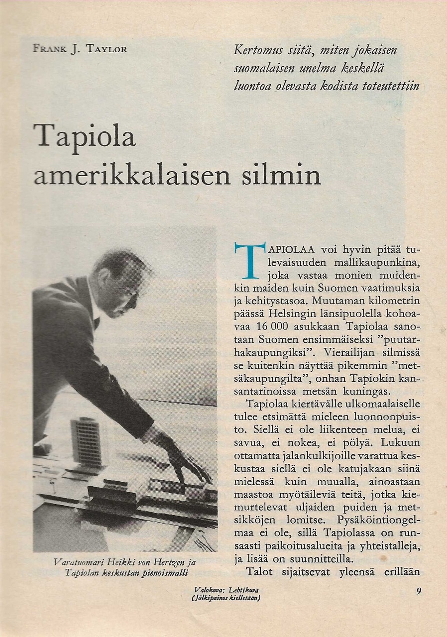 Valitut Palat -lehdessä julkaistiin vuonna 1966 Frank J. Taylorin artikkeli "Tapiola amerikkalaisen silmin".